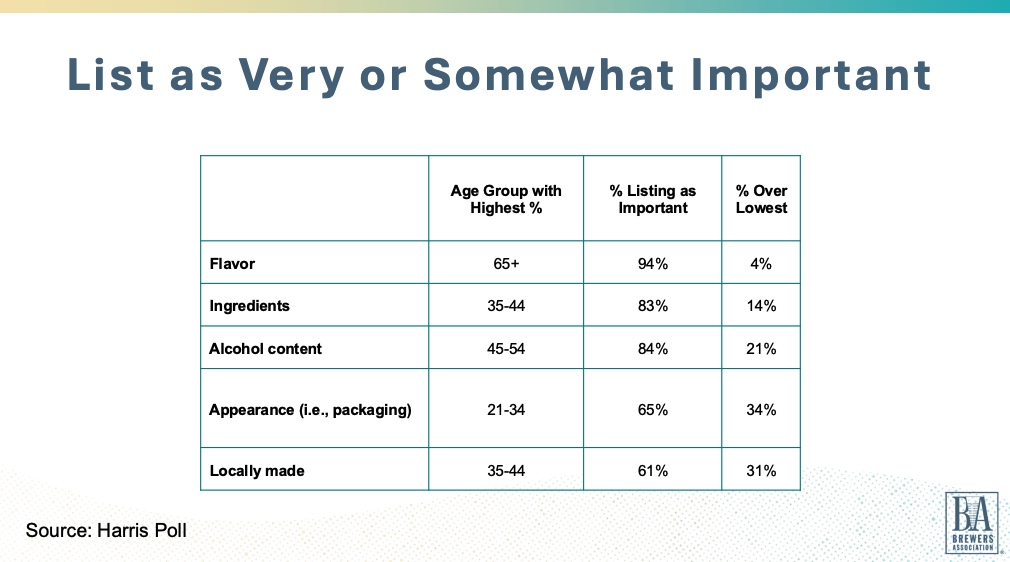 Flavor remains at the forefront of bev-alc purchasing decisions, according to data from the Brewers Association’s (BA) annual Harris Poll, shared by chief economist and VP of strategy Bart Watson and staff economist Matt Gacioch last week.