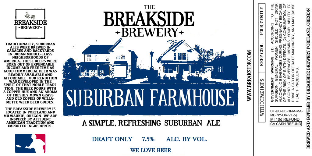Portland, OR – Portland & Milwaukie, Oregon based Breakside Brewery is pleased to announce their latest draft only seasonal – Suburban Farmhouse Ale. Harkening back to the American brewing traditions of the 90’s and inspired by afternoons spent at barbecues in the immaculately manicured backyards of Suburban America. This fresh copper hued ale is a classic simple, refreshing example of suburban ale.The Breakside Brewery is located in Portland and Milwaukie, Oregon. We are inspired by Affluent American tradition and imported ingredients.
