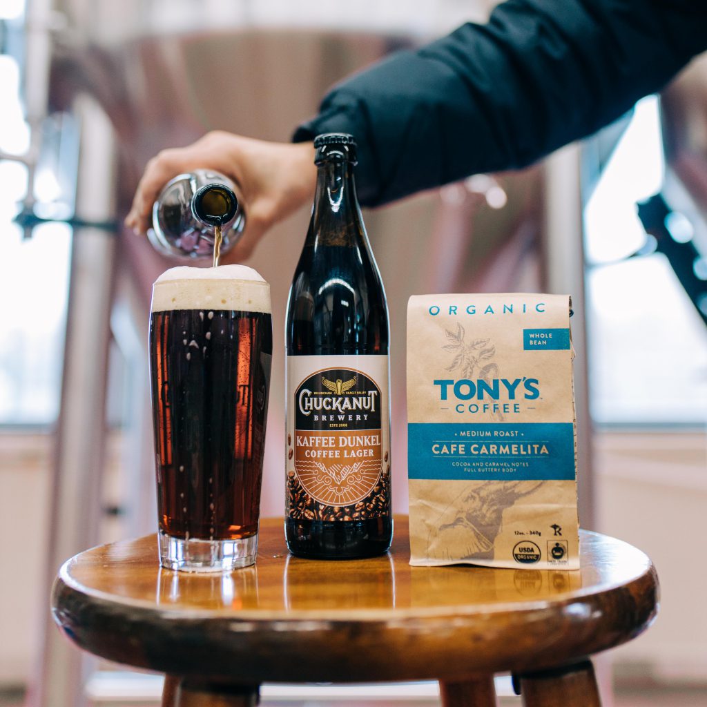 BELLINGHAM, Wash. — Chuckanut Brewery is excited about the release of a new Kaffee Dunkel Coffee Lager in collaboration with Tony’s Coffee in Bellingham. The classic Chuckanut Dunkel isa malty, deep mahogany Munich style award winning lager that’s balanced with smooth toffee & chocolate notes. In this Kaffee variation of Dunkel Chuckanut has partnered with friends at Tony’s coffee (Roast Magazine’s CoffeeRoaster of the Year 2021) to create another layer of fruit forward slightly sweet coffee to its classic German dark lager.