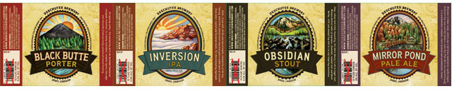 BEND, OR— Deschutes Brewery, the 6th largest craft brewery in the nation, has released new packaging and label designs for four of its year-round brands. The new designs use original label artwork to highlight the landmarks around the region and places brew names in a banner for heightened readability. This new packaging design was tested last year on the brewery’s seasonals Twilight Summer Ale and Red Chair Northwest Pale Ale, contributing to early sell-out of both brands.