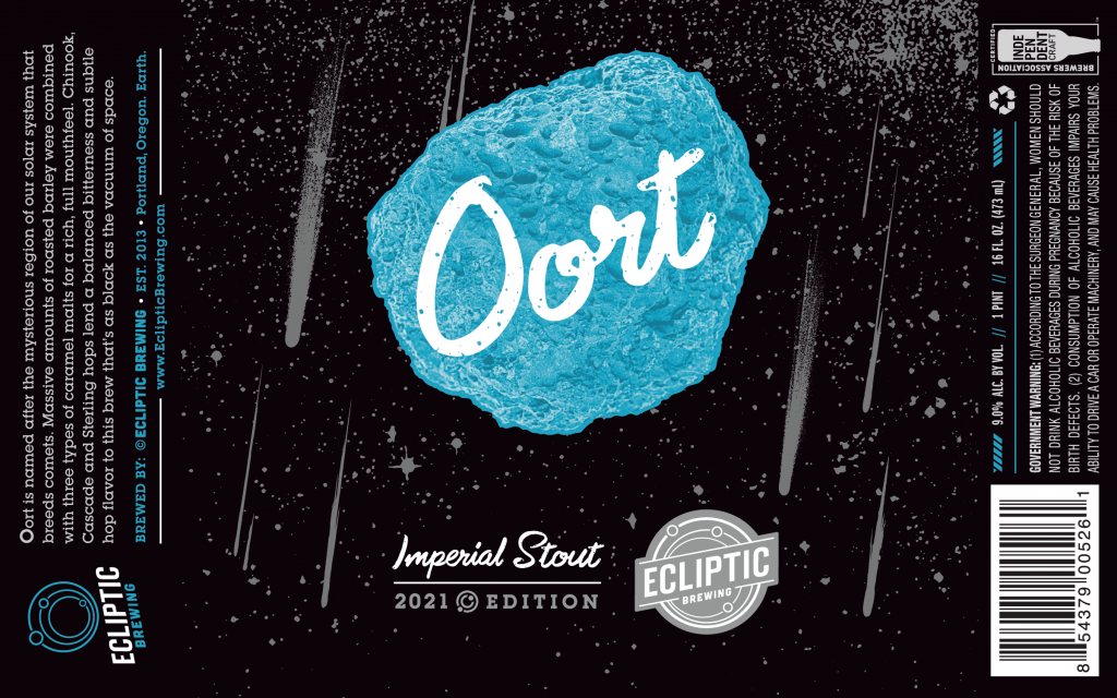 All three variants of Oort Imperial Stout will be released in both draft and 16-ounce cans (500ml bottles for Reserve Series) throughout Ecliptic Brewing’s distribution network beginning January 20th. Visit Ecliptic’s website for up-to-date details on potential release events.