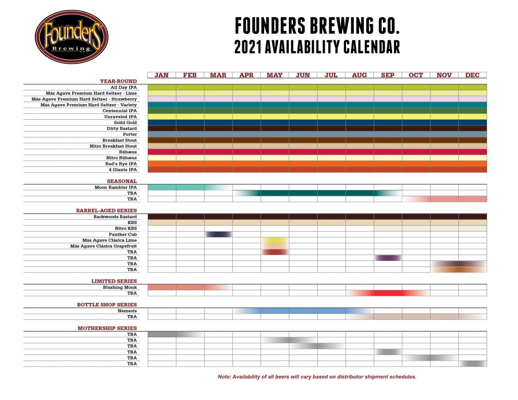 GRAND RAPIDS, Mich. – Founders announced its 2021 brand calendar, confirming changes and additions to the brewery’s lineup, including several new beers, a brand-new beer series and new package types.