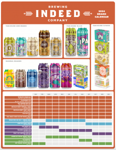Indeed Brewing Company’s 2024 calendar forecasts exciting new flavors and innovative packaging this year, as well as repeat appearances by the beers that fans know and love. The brewery will continue to expand its lineup of THC + CBD-infused beverages and gummies. Known for bold flavors, intriguing package design and a dedication to community involvement, Indeed Brewing Company looks forward to another year of good people, good beers and good experiences
