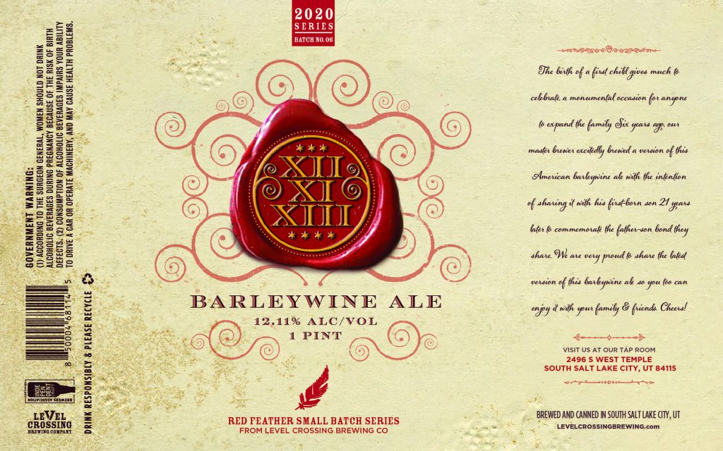 SALT LAKE CITY — Award winning Level Crossing Brewing Company is set to release its 6th beer in its Red Feather Small Batch Series on Friday December 11, 2020 at 11AM. XII XI XIII (12, 11, 13) is an American Barleywine Ale and measures in at a strapping 12.11% ABV. This compelling beer contains local maltster Solstice Mild & Pale malts, accompanied by Thomas Fawcett pale chocolate malt. Rounding out the flavor profile are Apollo, Amarillo, Chinook, Columbus, and Nugget hops. Level Crossing Head Brewer, Chris Detrick, brewed a version of this beer on his first-born son’s birthday with the intention of aging the beer and gifting it to him on his 21st birthday. We are proud to offer this version with everyone to celebrate sharing memories and great suds with friends & family. Enjoy!