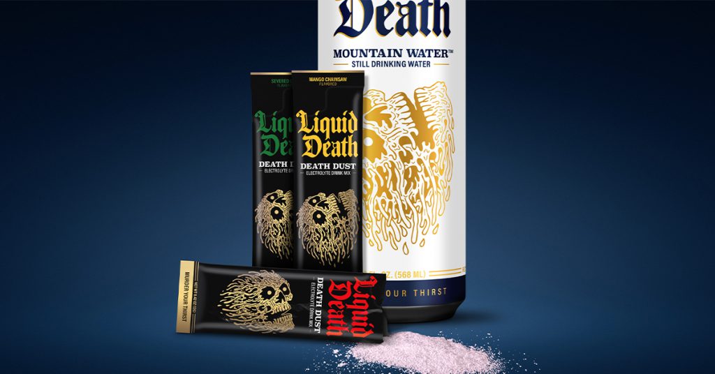 With Death Dust, Liquid Death is now extending its portfolio beyond RTD. Cessario noted that powdered hydration products are the smallest category the brand has tackled to date, but he believes the brand is primed to stand out in a set that has already seen significant growth and disruption in recent years through the expansion of brands like Liquid I.V. and PRIME. However, he cautioned that the company views powders as an experimental space and isn’t anticipating the line to be as large out the gate as its past line extensions.