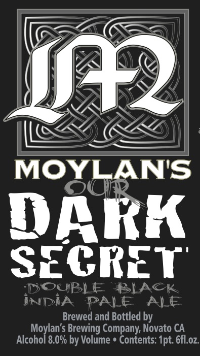 Our Dark Secret Double Black IPA will be available on draft, in growlers or bottles to go at the pub, and on draft at select locations carrying Moylan’s beer.