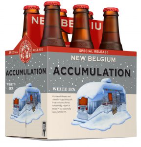 Ft. Collins, Colo. – Inspired by Colorado’s white winters, New Belgium Brewing’s Accumulation White IPA is available beginning today through January 2018. Now in its fifth year, the wintertime favorite features Mosaic and Amarillo hops, tropical aroma and soft citrus, mango and lemon flavors, followed by a bitter bite. The medium-bodied IPA pours unfiltered gold and blizzard white with a snowy head.