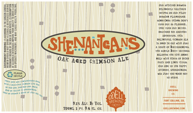 A tribute to the “happy accident,” the brew boasts a limerick on its label: There once was a mischievous brew, with a beautiful crimson like hue. We had one and had one again, and we called it Shenanigans. Then we brewed a batch up just for you. Odell Brewing will kick off the release with a Tap Room celebration on March 24th featuring samples of the beer, local food, live music, and a limerick contest.