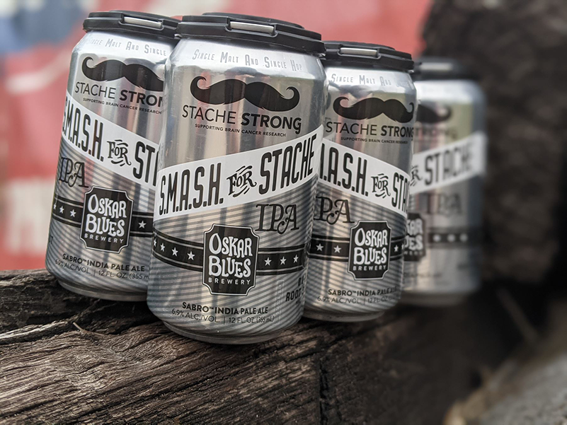 Longmont, Colo. – Oskar Blues Brewery announces the taproom-only release of S.M.A.S.H. for Stache (6.9% ABV), a double dry-hopped, heavily Sabro-infused SMaSH (stands for “single malt and single hop”) IPA. A portion of proceeds from sales of S.M.A.S.H. for Stache will benefit StacheStrong, an organization that raises funds for brain cancer research. S.M.A.S.H. for Stache will be available on draft and in 6-packs of 12 oz. cans starting May 1 at all Oskar Blues taprooms – Longmont and Boulder, CO; Brevard, NC; and Austin, TX, locations.