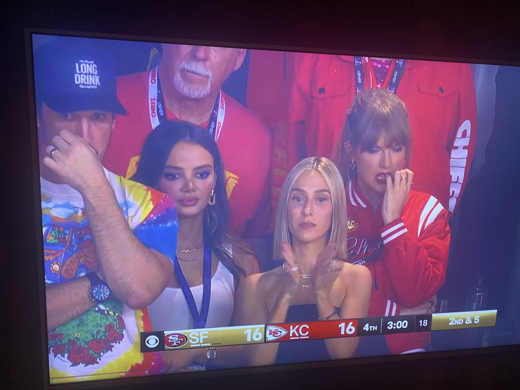 This shot was captured during the San Francisco 49ers’ fourth quarter drive, with Swift noticeably sweating the outcome.