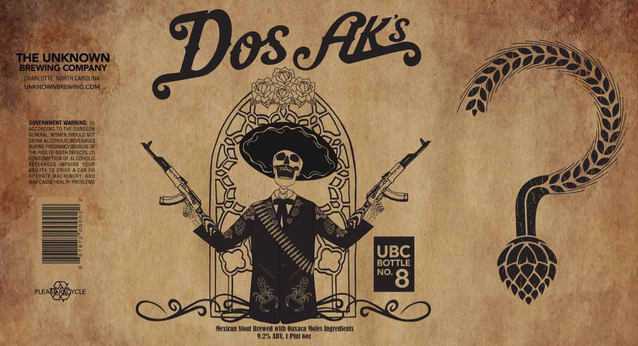 CHARLOTTE, N.C. – The Unknown Brewing Company, located in Charlotte’s South End, is staying true to its commitment of keeping it weird with the release of its 2016 Día de los Muertos (Day of the Dead) series beer, Dos AK’s, on Wednesday, November 2. The Mexican-style stout will be sold in 22-ounce bottles and available on draft in The Unknown’s taproom to celebrate the official Day of the Dead.